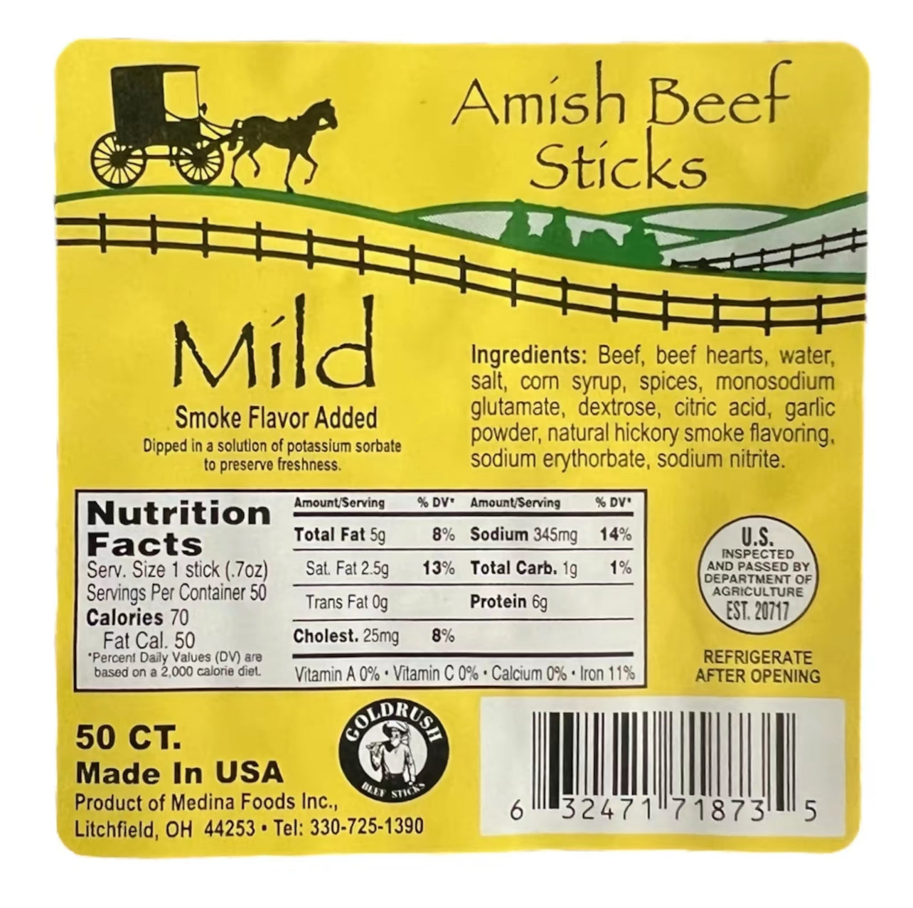 Experience the rich, savory flavor of our Amish beef sticks, conveniently packaged in a 50-count saddle bag. Each 0.7 oz stick is crafted with care, using high-quality beef and traditional Amish recipes that ensure a delicious, satisfying snack. Perfect for on-the-go enjoyment, these beef sticks are not only a tasty treat but also a great source of protein, making them an ideal choice for outdoor adventures, road trips, or a quick pick-me-up during your busy day. Indulge in the wholesome goodness of Amish craftsmanship with every bite!