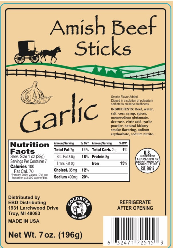 Experience the rich flavor of Amish Garlic Beef Sticks, crafted from 100% premium American beef. These savory snacks are expertly seasoned with garlic, delivering a robust taste that satisfies your cravings. Perfect for on-the-go snacking or as a delicious addition to any charcuterie board, these beef sticks embody quality and tradition in every bite. Enjoy a wholesome, protein-packed treat that reflects the craftsmanship of American artisans.