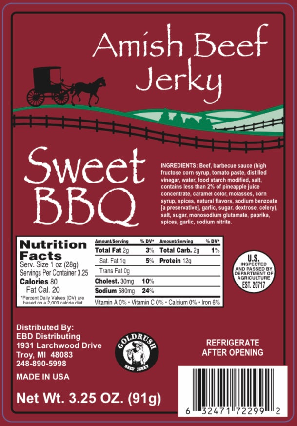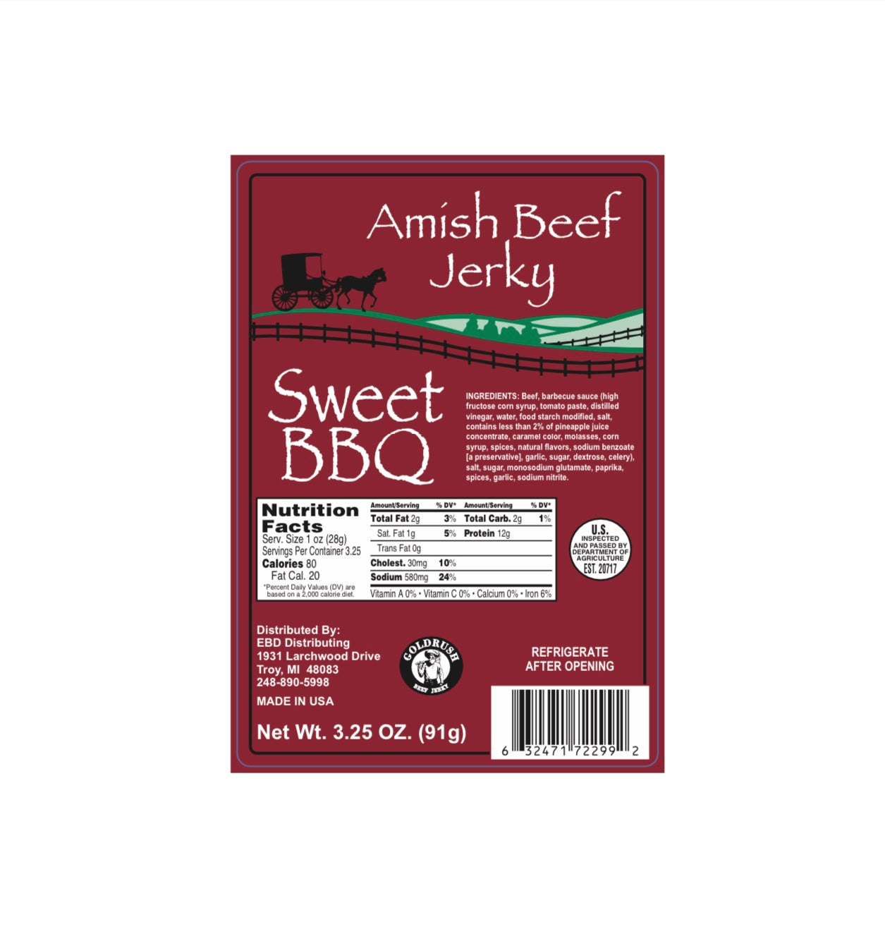 Experience the rich, smoky flavor of Amish BBQ Beef Jerky, crafted from 100% premium American beef. This artisanal jerky is slow-cooked to perfection, ensuring a tender texture and robust taste that satisfies even the most discerning palates. Ideal for snacking on the go or as a savory addition to any meal, this jerky embodies the quality and tradition of Amish craftsmanship. Enjoy a delicious, protein-packed treat that supports local American farmers and delivers an authentic BBQ experience in every bite.