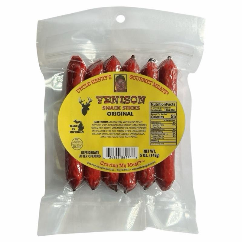 Venison snack sticks crafted with a touch of pork for texture and flavor, embodying the essence of the wild. These savory delights are meticulously seasoned and expertly smoked over hardwood, imparting a rich, smoky aroma that tantalizes the senses. Each bite offers a perfect balance of tender venison and subtle pork, complemented by the deep, earthy notes of the hardwood smoke.