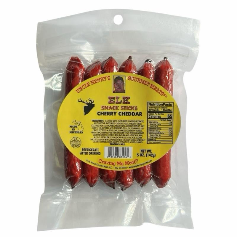 Our tantalizing Elk Cherry Cheddar Snack Stick, meticulously crafted with a harmonious blend of premium elk meat, savory cheddar cheese, and a hint of hickory smoke. We take pride in using minimal pork to deliver a lean and flavorful experience.